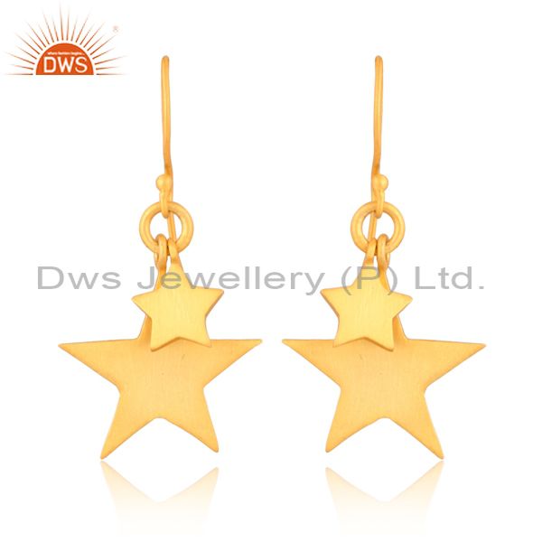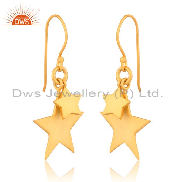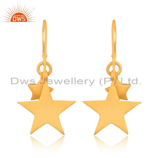Handmade Brass Gold Star Charms Set Earwire Drop Earrings