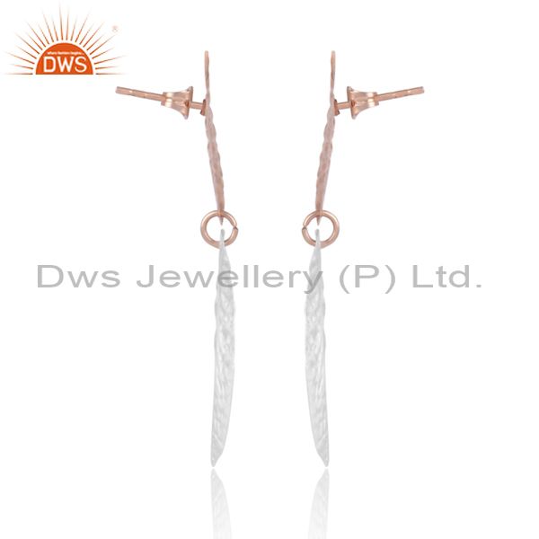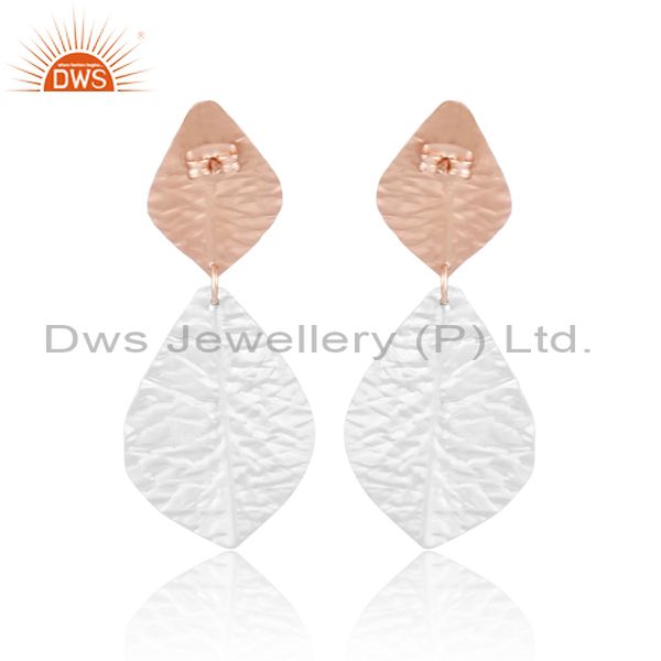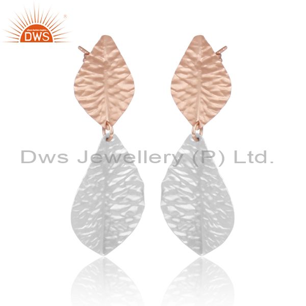Handmade Brass Rose Gold On Brass Textured Drop Earrings