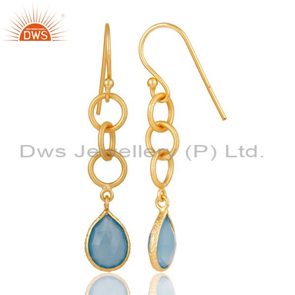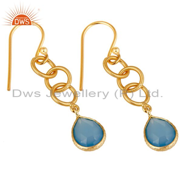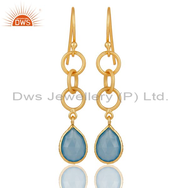 Handmade Chalcedony Bazel Set Drops Earring With 18K Gold Plated Sterling Silver