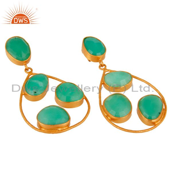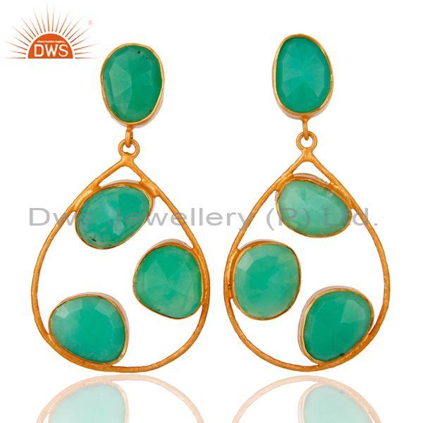 Handmade Chrysoprase Gemstone Earrings In 24K Gold Over Sterling Silver Jewelry