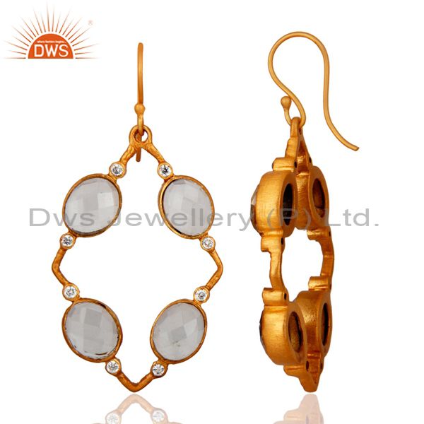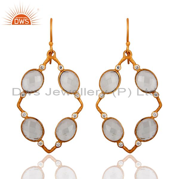 Handmade Crystal Quartz And Cz Designer Yellow Gold Plated Earrings