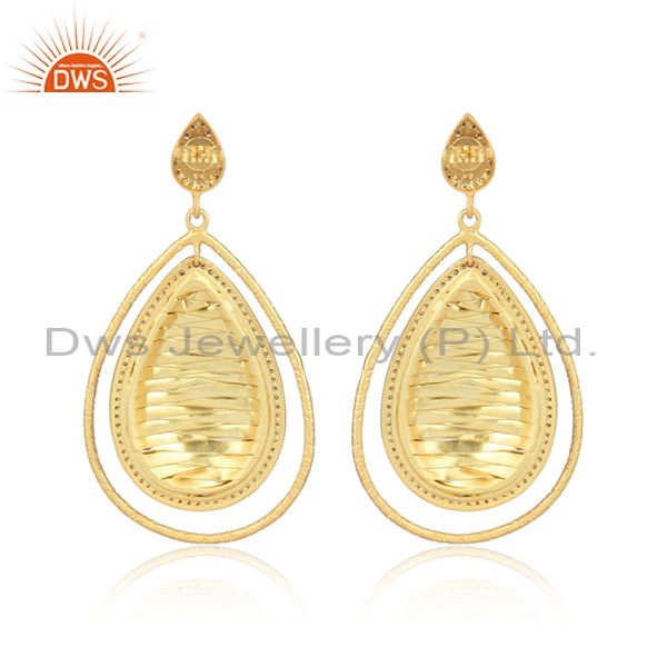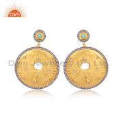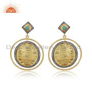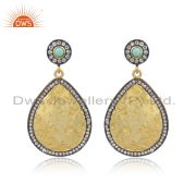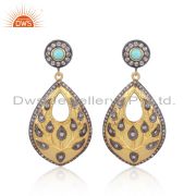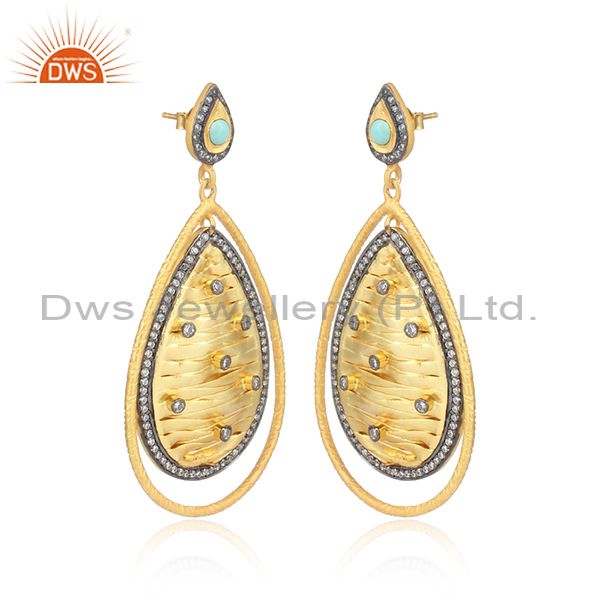 Handmade Cz And Arizona Turquoise Gold On Silver Earrings