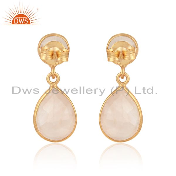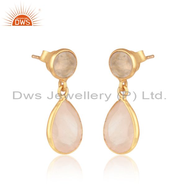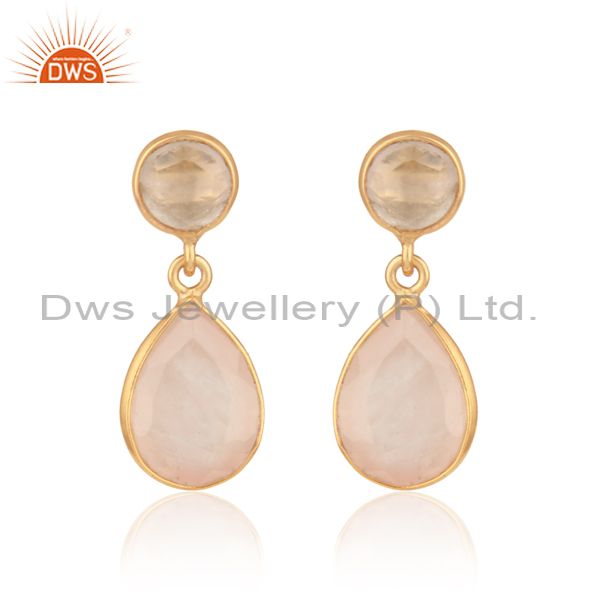 Handmade Dangle Earriing in Yellow Gold On Silver with Rose Quartz