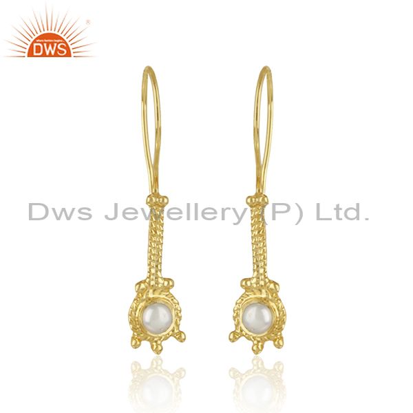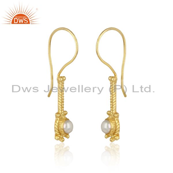Handmade Designer Earring In Yellow Gold On Silver 925 With Pearl