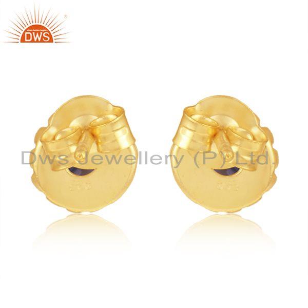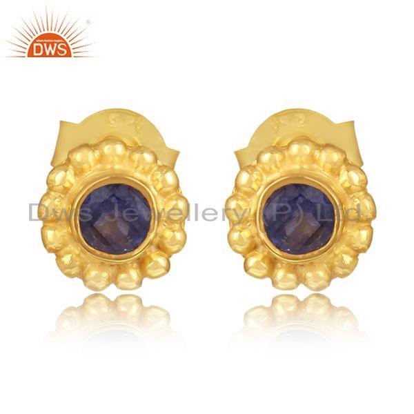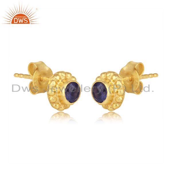 Handmade Designer Earring In Yellow Gold On Silver With Iolite