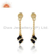 Handmade Designer Gold on Silver 925 Black Onyx Dangle Hoop