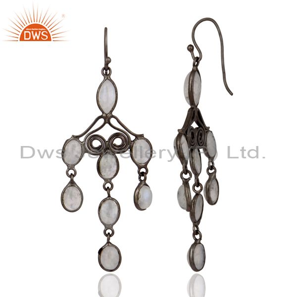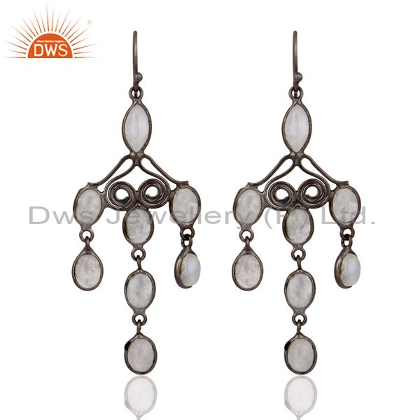 Handmade Designer Rainbow Moonstone Dangle Earring Indian Gemstone Fine Jewelry