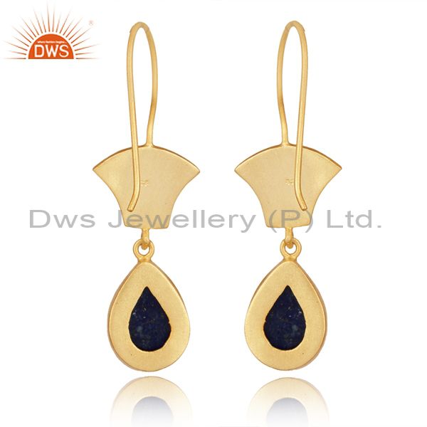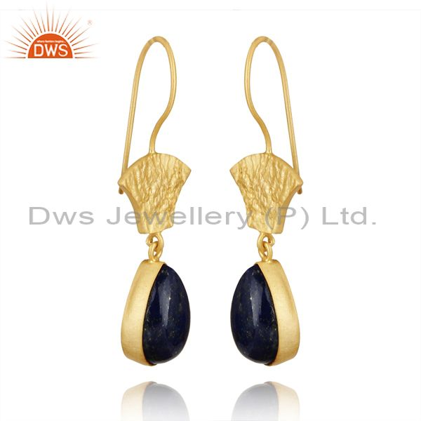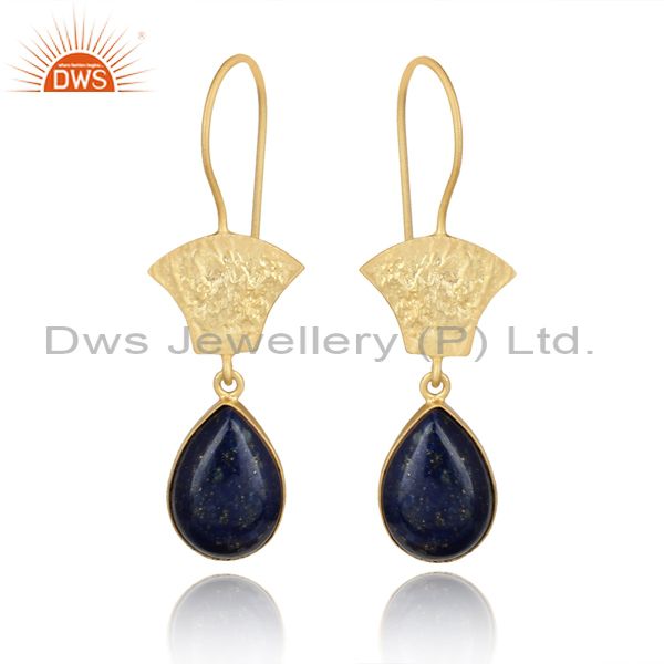 Handmade DesignTextured Gold on Silver 925 Lapis Earring