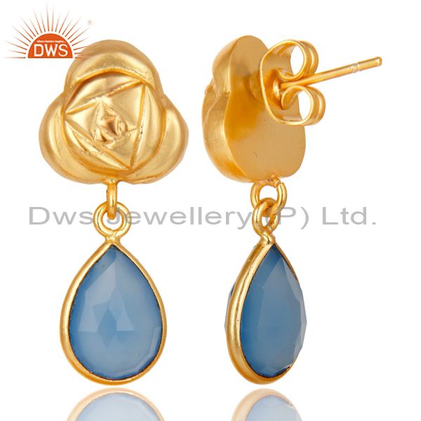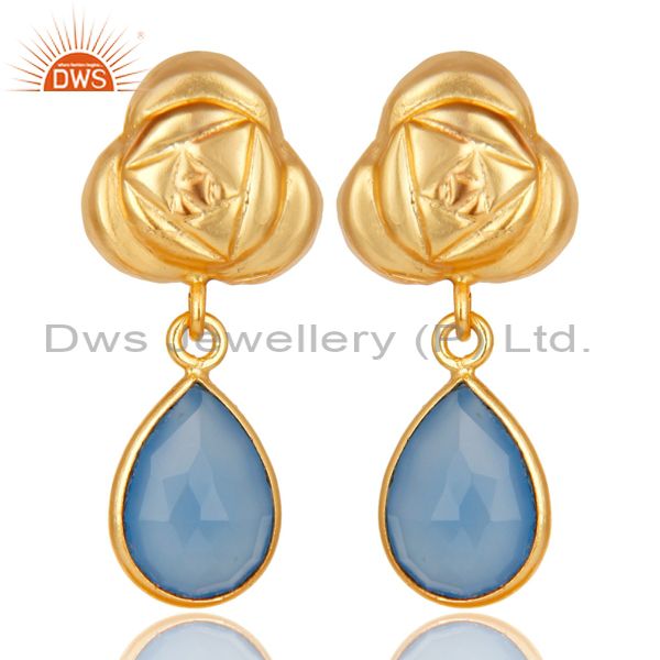 Handmade Dyed Chalcedony Bezel Set Drops Brass Earrings Made In 14K Gold Plated