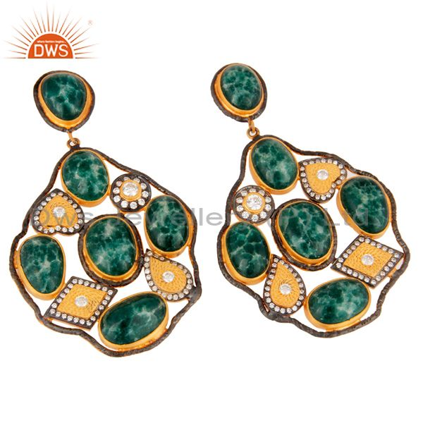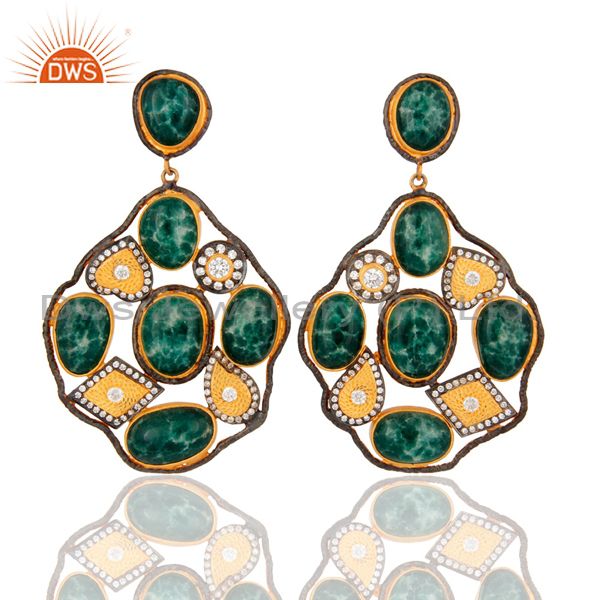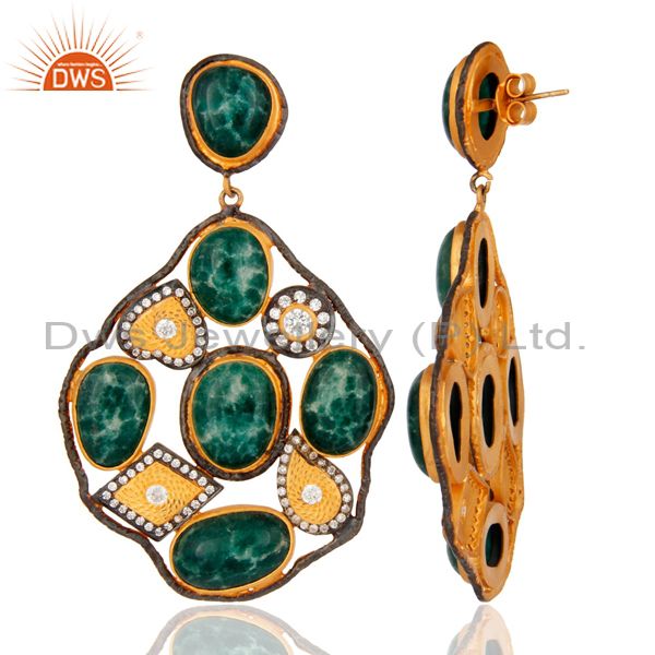 Handmade Dyed Emerald Gemstone Sterling Silver Gold Plated Designer Look Earring