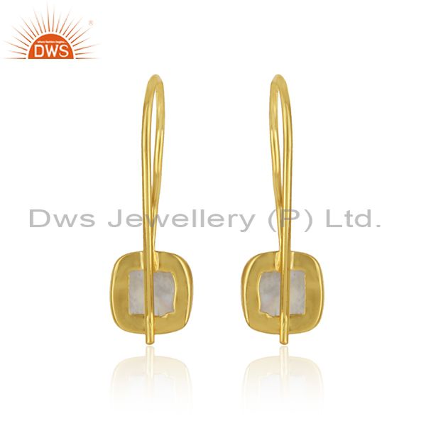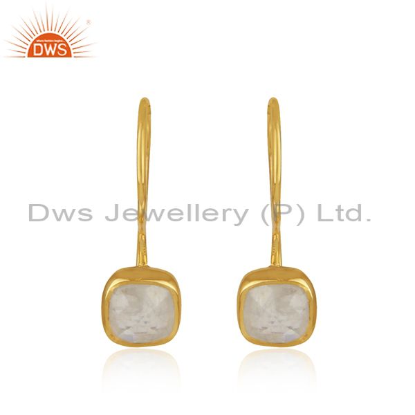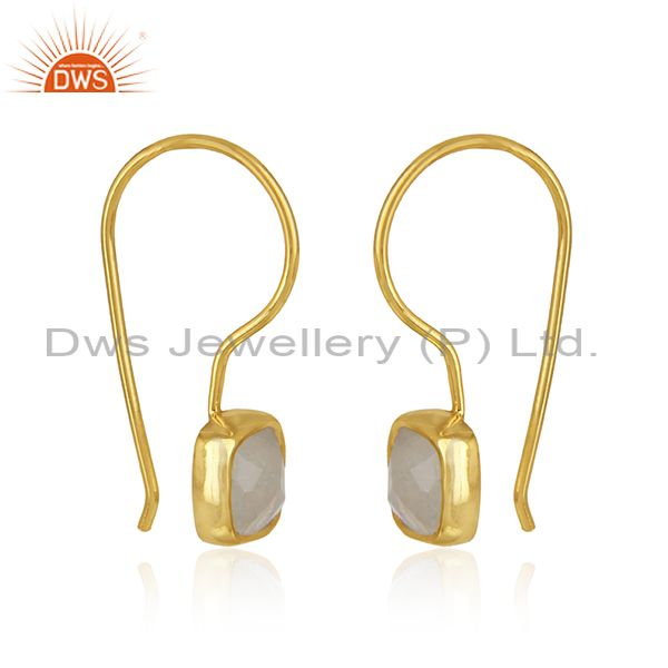 Handmade Earring In Yellow Gold On Silver With Raonbow Moonstone