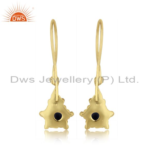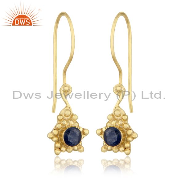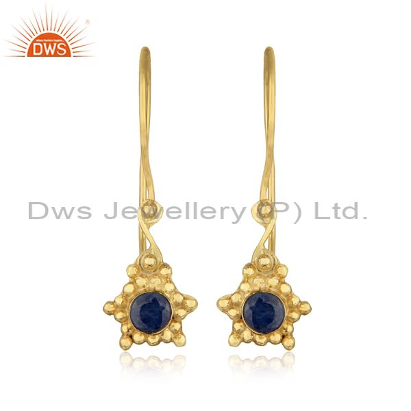 Handmade Earring in Yellow Gold Over Silver and Blue Sapphire