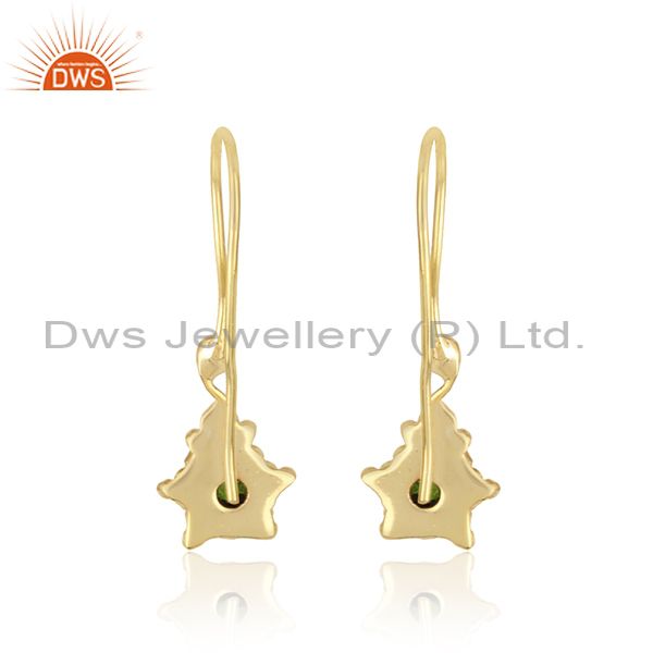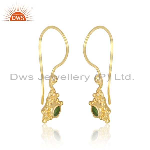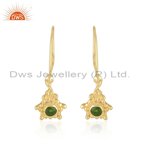 Handmade Earring in Yellow Gold Over Silver and Chrome Diopside