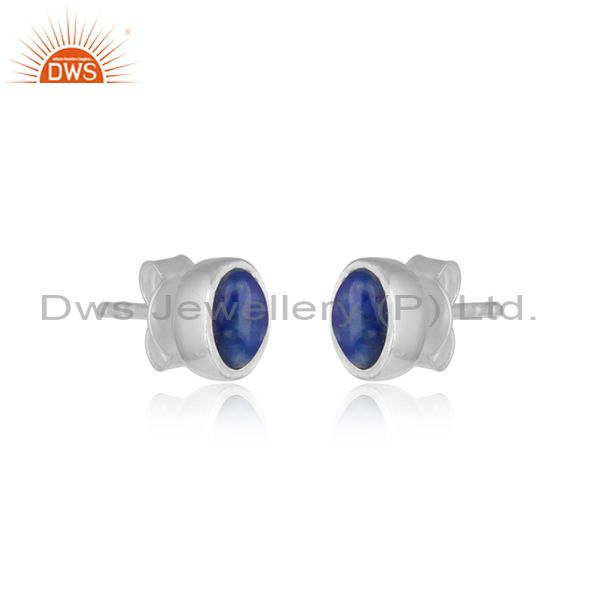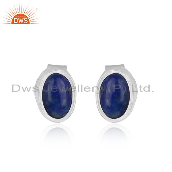 Handmade Elegant Designer Sterling Silver Studs with Lapis Lazuli