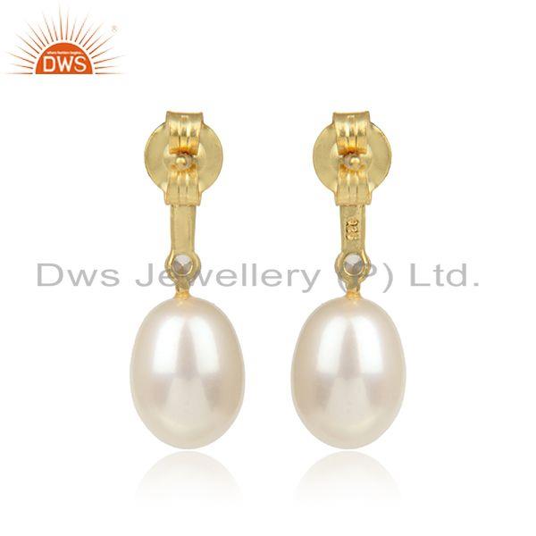 Handmade Elegant Yellow Gold On Silver 925 Dangle With Pearl And Cz
