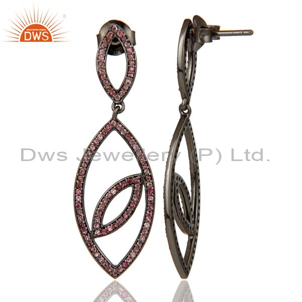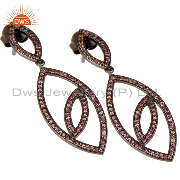 Handmade Eyes Design Dangle Tourmaline with Oxidized Sterling Silver Earrings