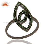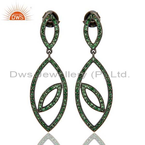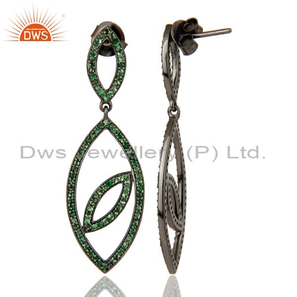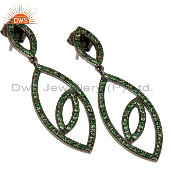 Handmade Eyes Design Dangle Tsavorite with Oxidized Sterling Silver Earrings