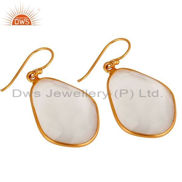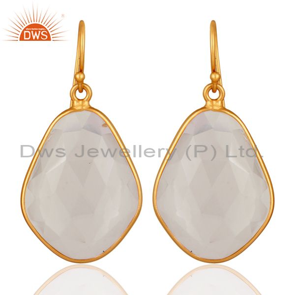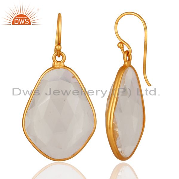 Handmade Faceted Crystal Quartz Bezel Set Gold Plated Sterling Silver Earrings
