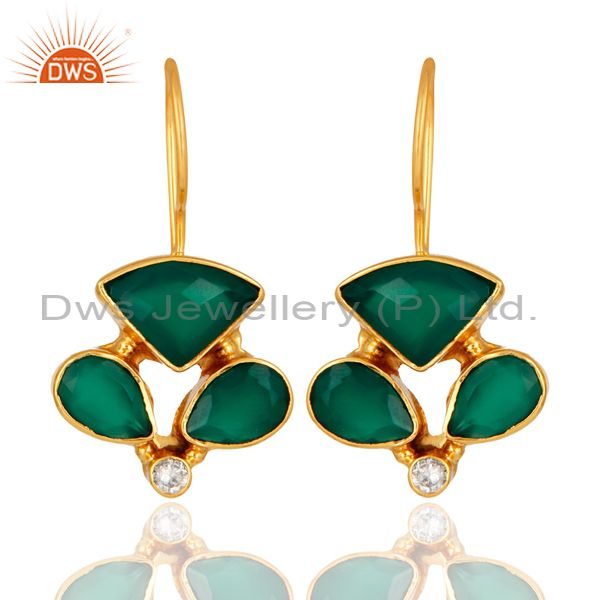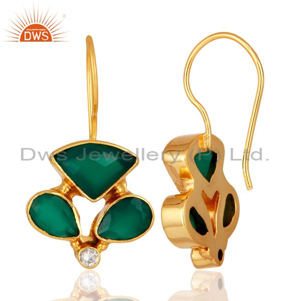 Handmade Faceted Green Onyx Gemstone Designer Earrings - Yellow Gold Plated