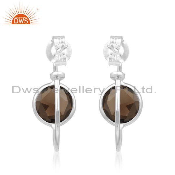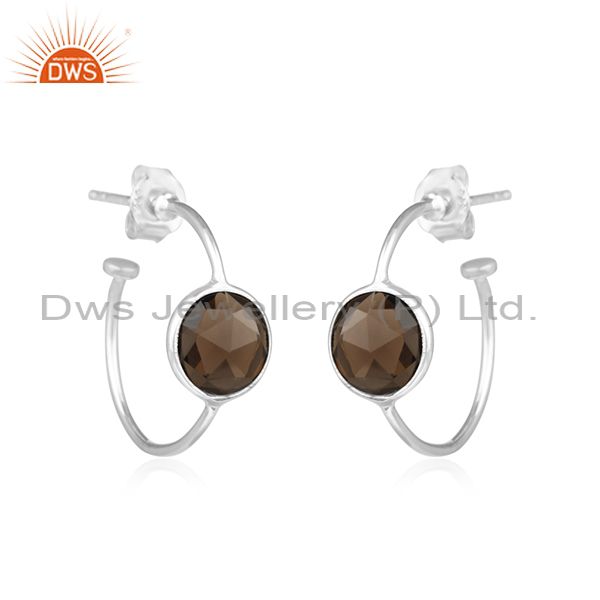Handmade Fine Silver Smoky Quartz Gemstone Hoop Earrings Manufacturer