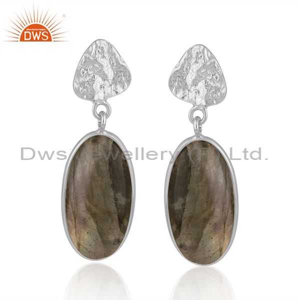 Handmade Fine Sterling Silver Natural Labradorite Gemstone Earrings
