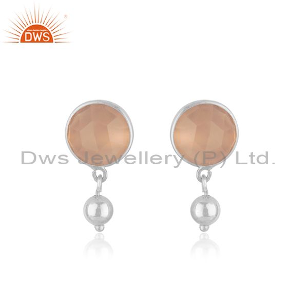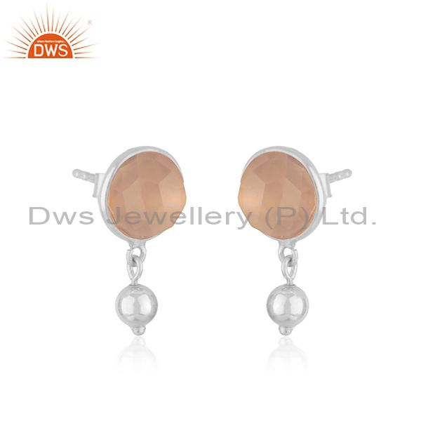 Handmade Fine Sterling Silver Rose Chalcedony Gemstone Drop Earring Manufacturer