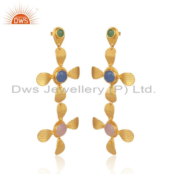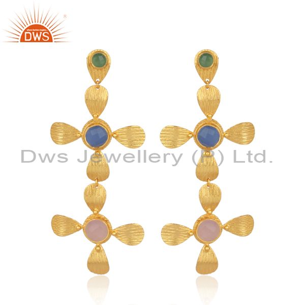 Handmade Glass Blue Chalcedony Set Floral Long Drop Earring