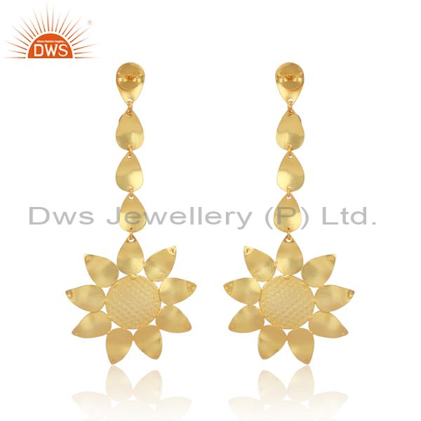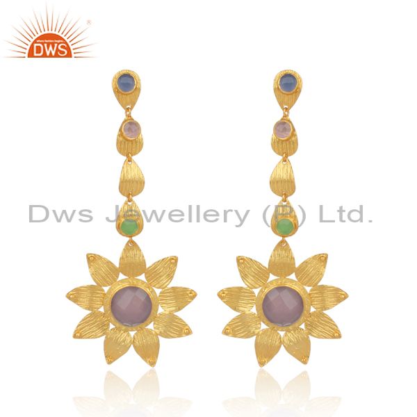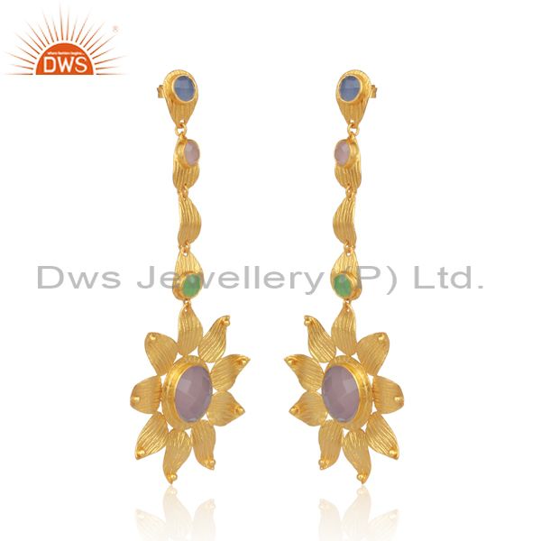 Handmade Glass Blue Chalcedony Set Long Drop Floral Earrings
