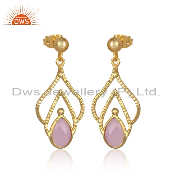 Handmade Glass Rose Set Classic Design Brass Gold Earrings