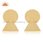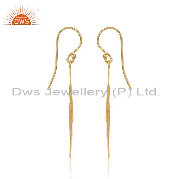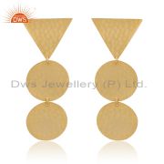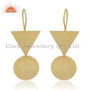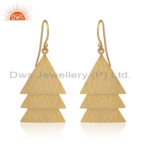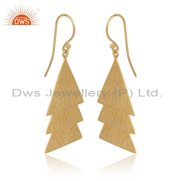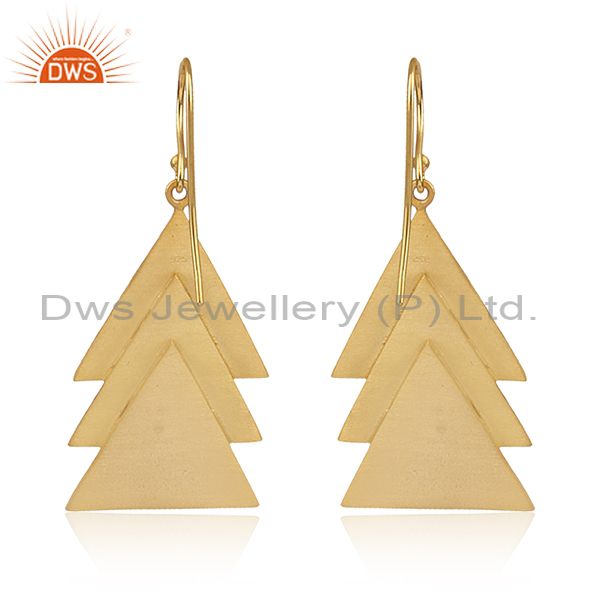 Handmade Gold On 925 Silver Triangle Tree Long Drop Earrings