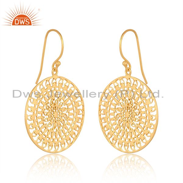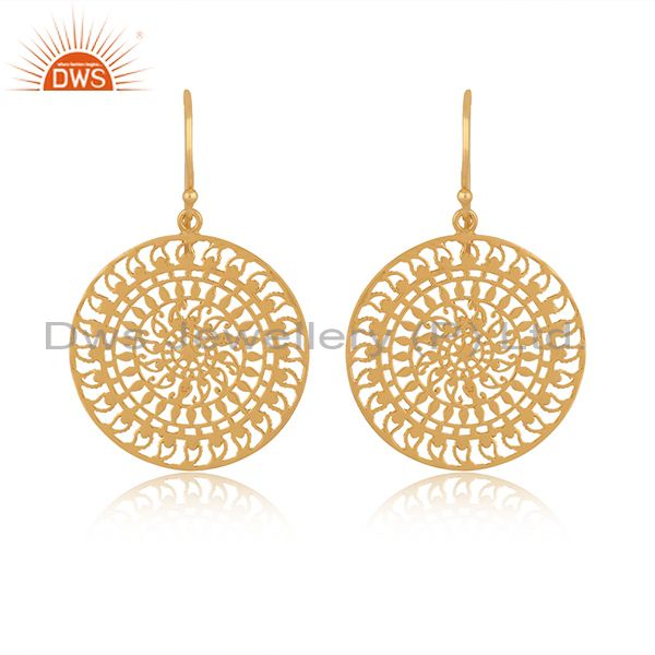 Handmade Gold On 925 Sterling Silver Round Textured Earrings