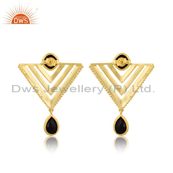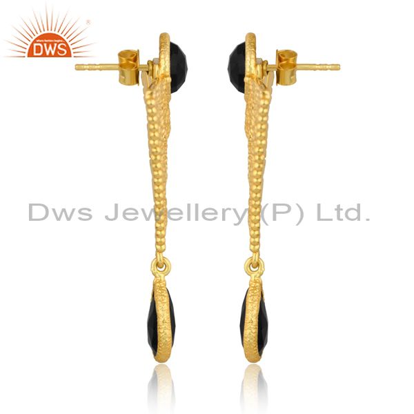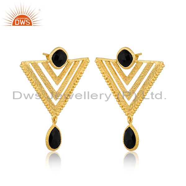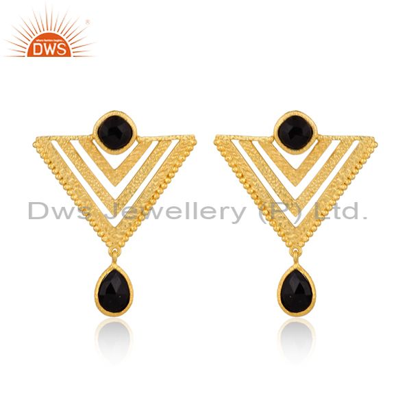 Handmade Gold On Silver Black Onyx Textured Fancy Earrings