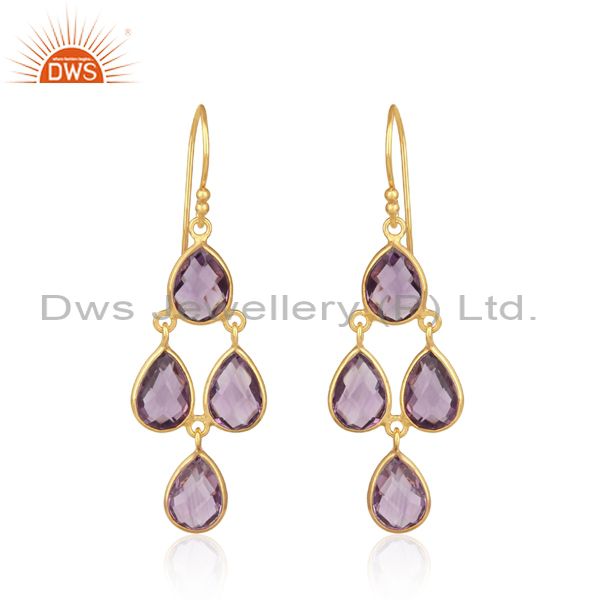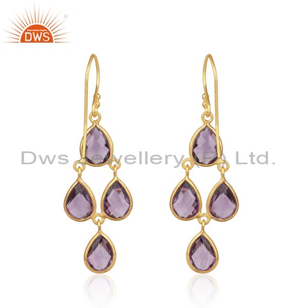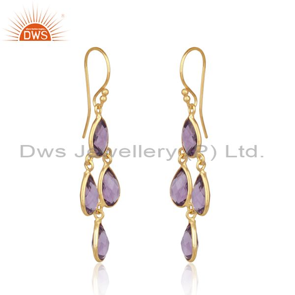 Handmade Gold On Sterling Silver Amethyst Chandelier Earrings