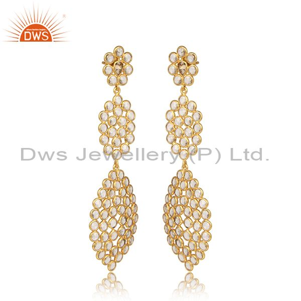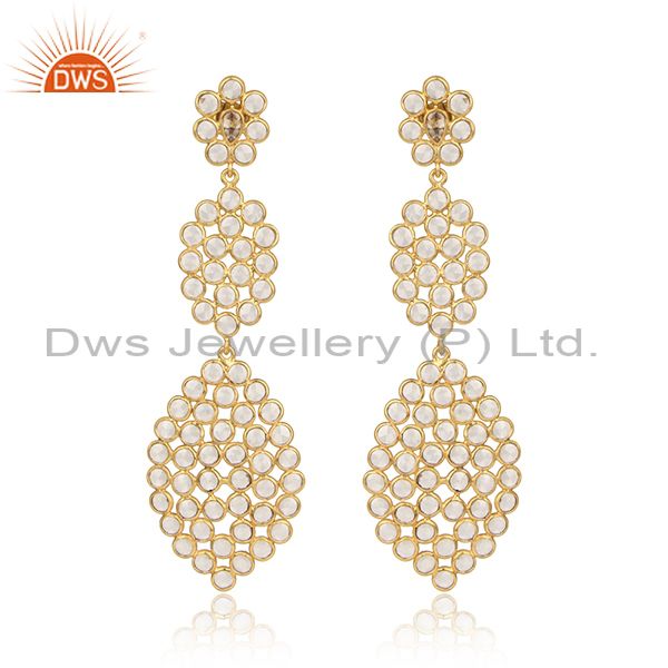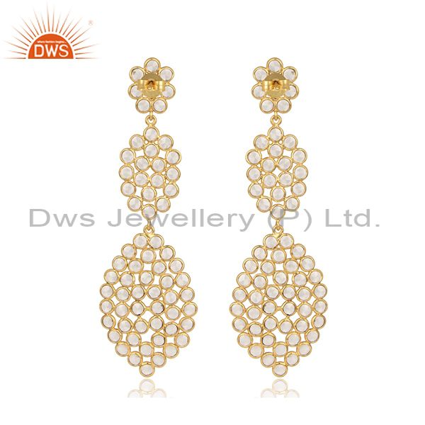 Handmade Gold Over Silver White Zircon Gemstone Dangle Earrings