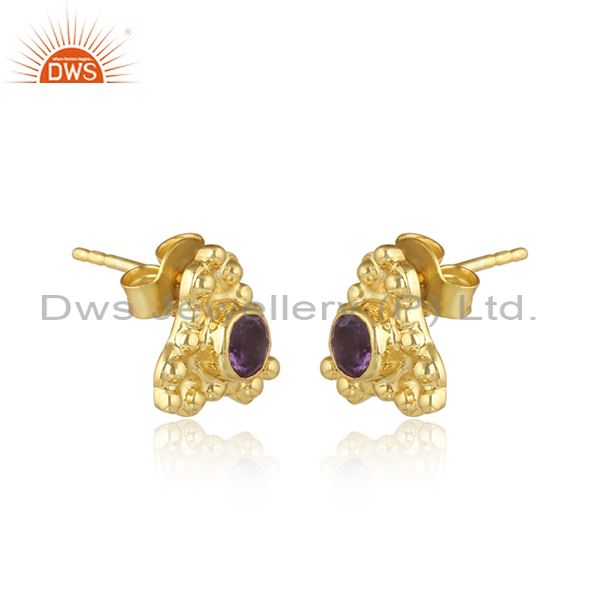 Handmade Gold Plated 925 Silver Amethyst Gemstone Stud Earrings