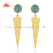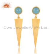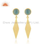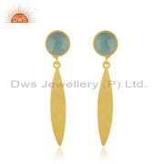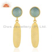 Handmade Gold Plated 925 Silver Aqua Chalcedony Gemstone Earrings Manufacturer