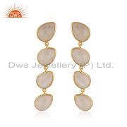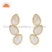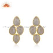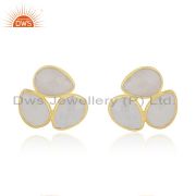 Handmade Gold Plated 925 Silver Rainbow Moonstone Stud Earrings Jewelry