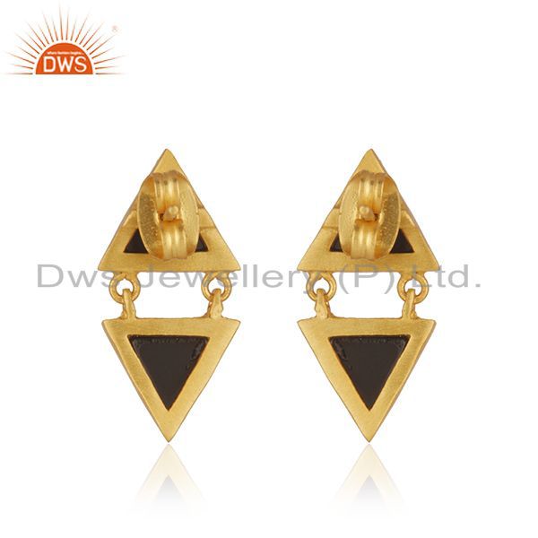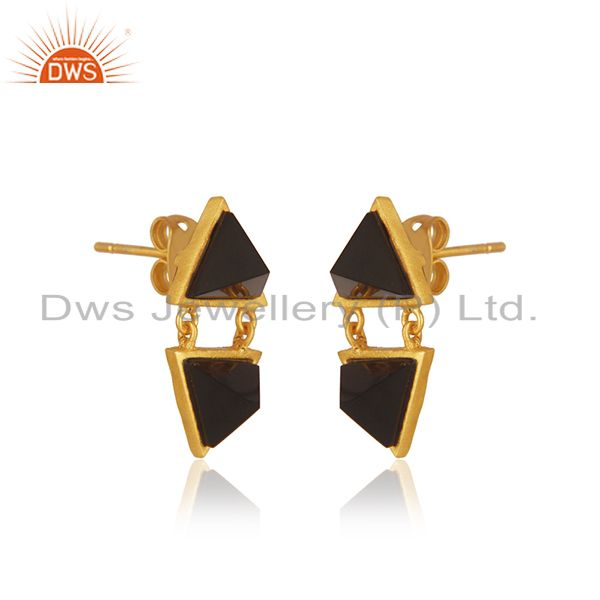 Handmade Gold Plated Brass Fashion Black Onyx Gemstone Girls Earrings