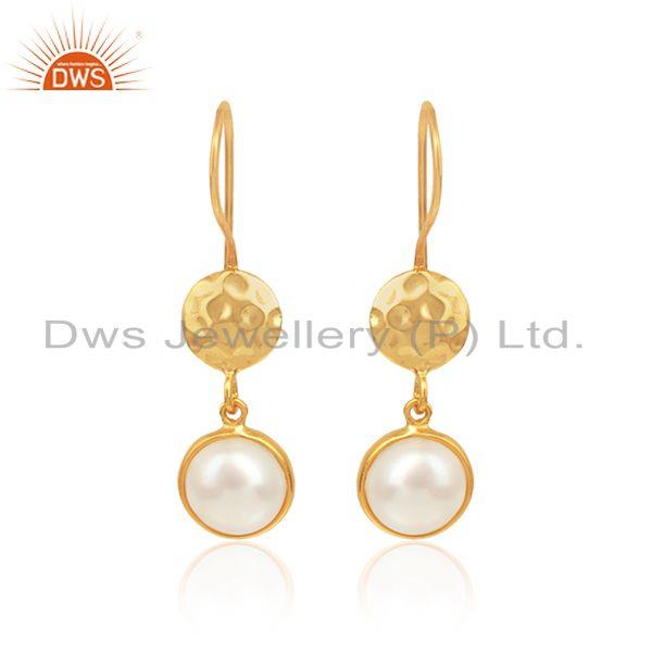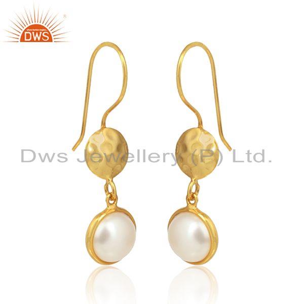 Handmade Gold Plated Silver Natural Pearl Gemstone Earrings