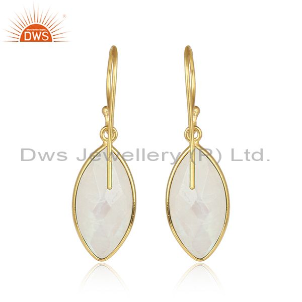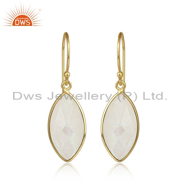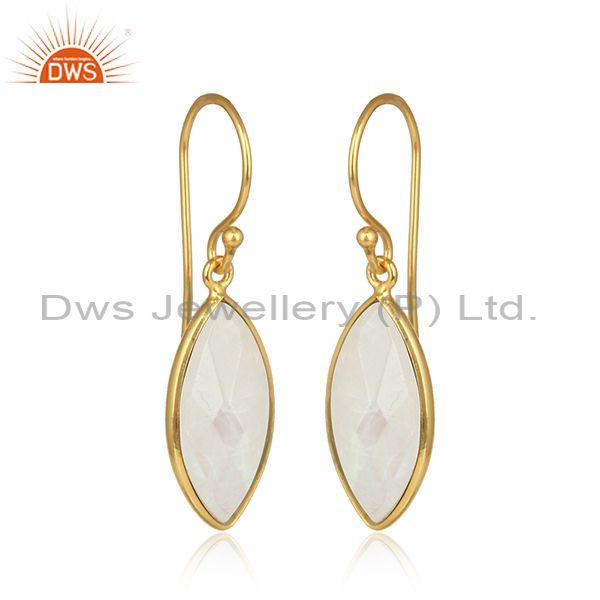 Handmade Gold Plated Silver Rainbow Moonstone Gemstone Earrings