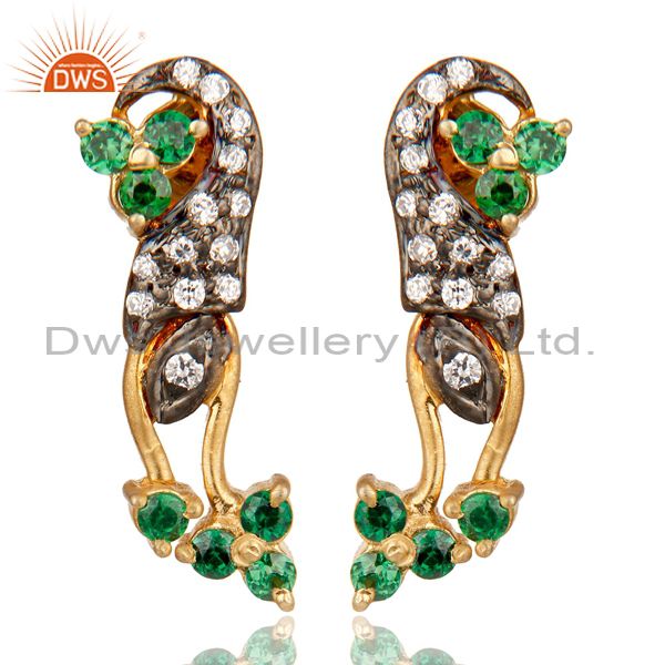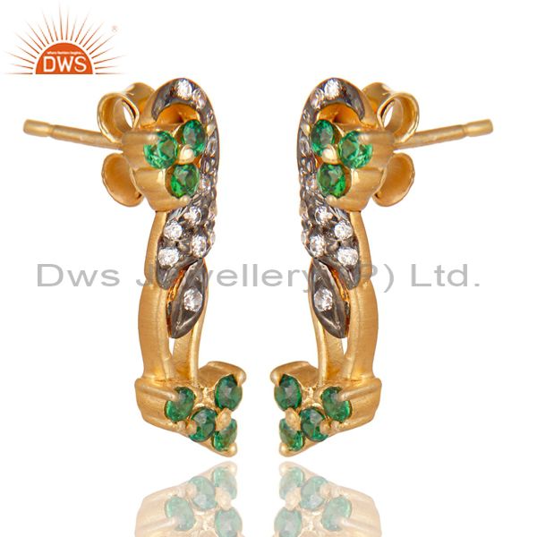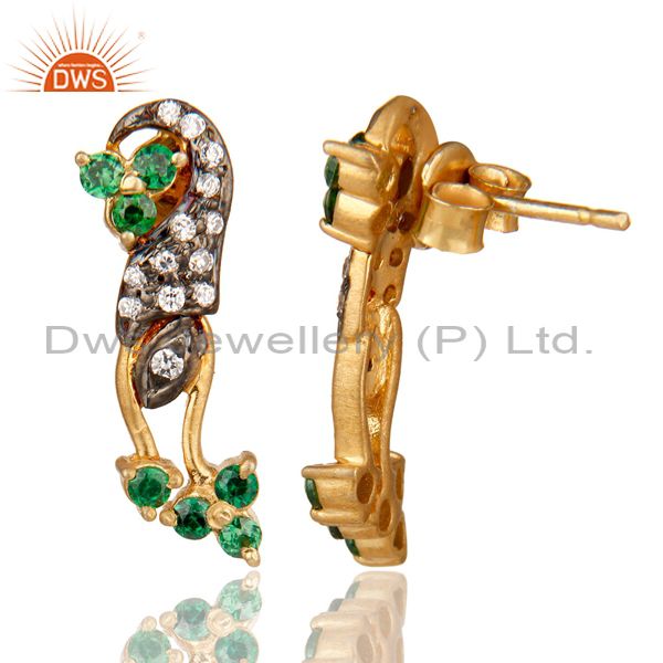 Handmade Green Cubic Zirconia 925 Sterling Silver Stud Earrings With Gold Plated