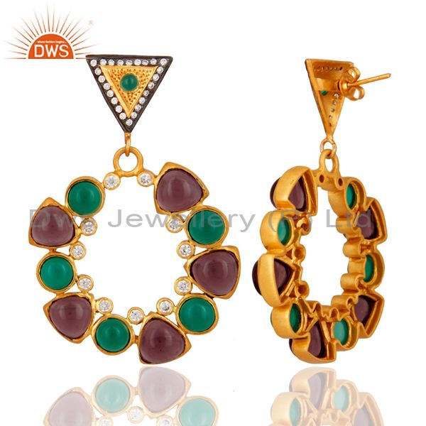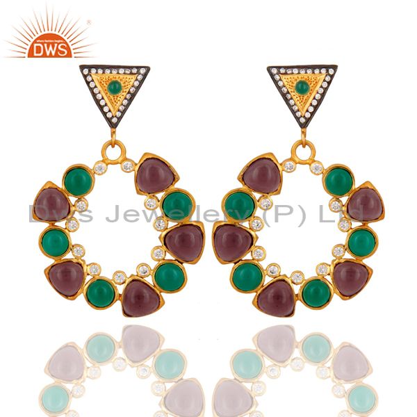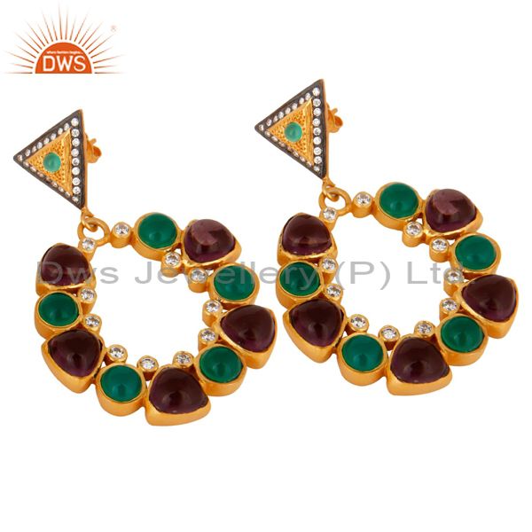 Handmade Green Onyx & Hydro Amethyst 18K Gold Plated Designer Earrings