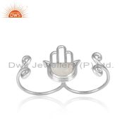 Handmade Hamsa Hand Silver Dangle With Rainbow Moonstone
