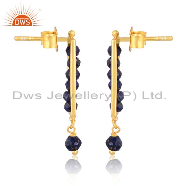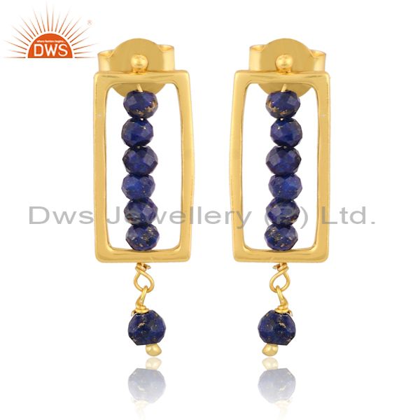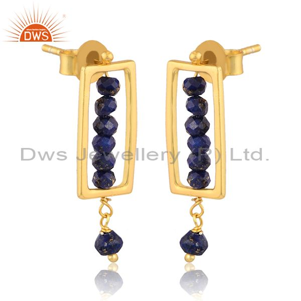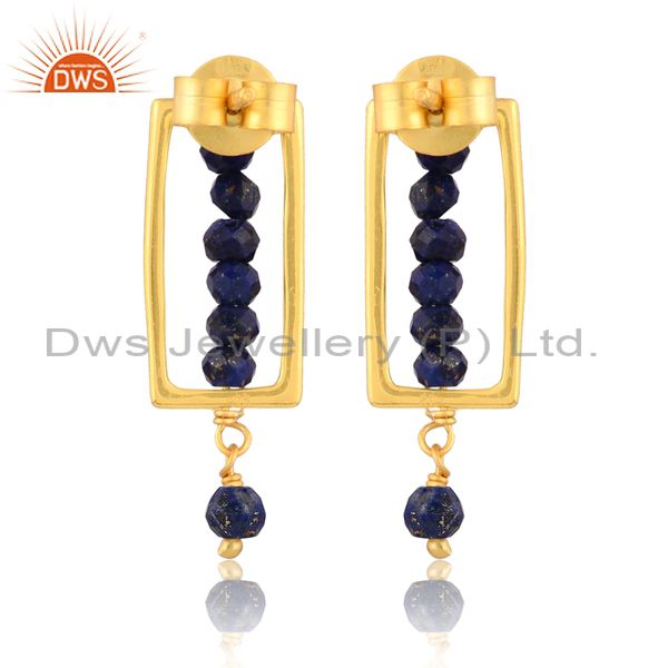 Handmade Lapis Set Gold On 925 Silver Rectangular Earrings