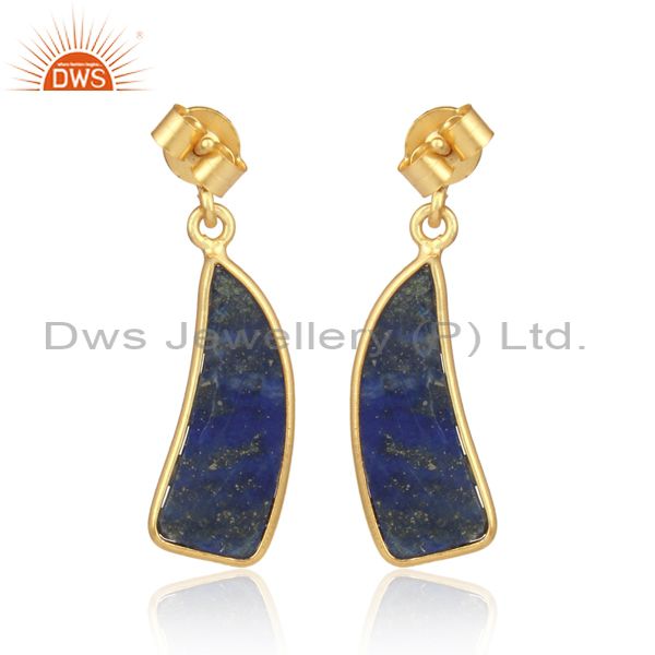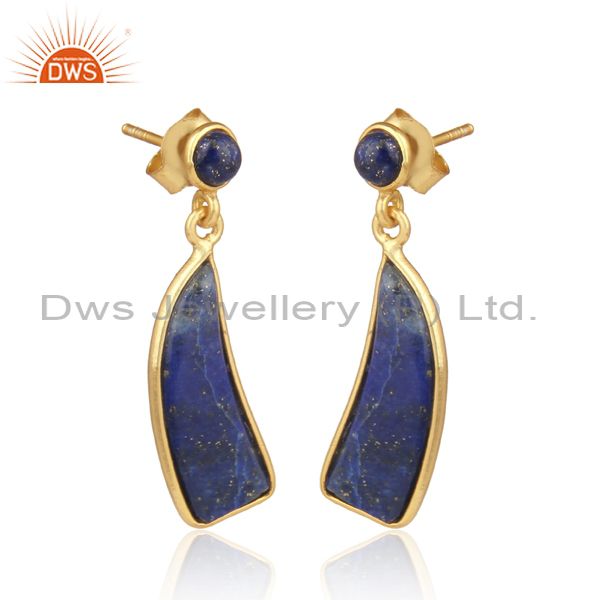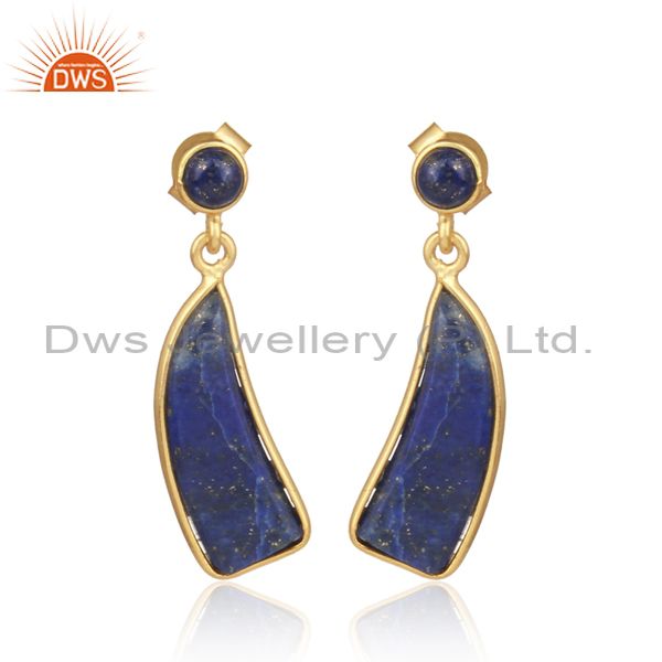 Handmade Lapis Set Gold On Silver Statement Drop Earrings