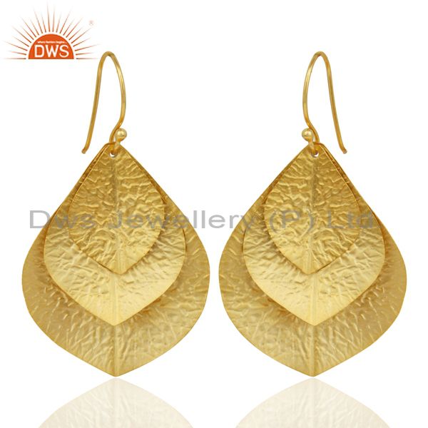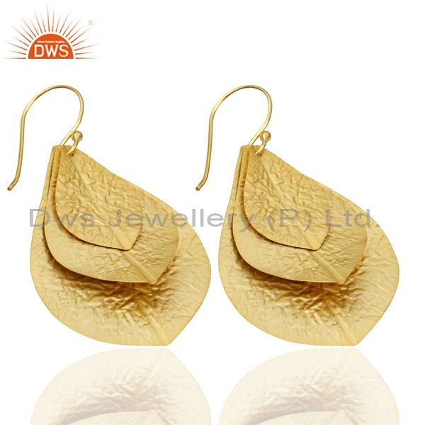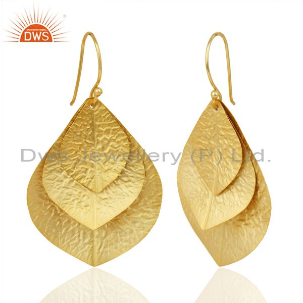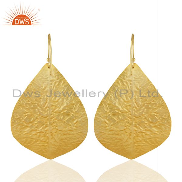 Handmade Leaf Design Gold Plated Sterling Plain Silver Earrings