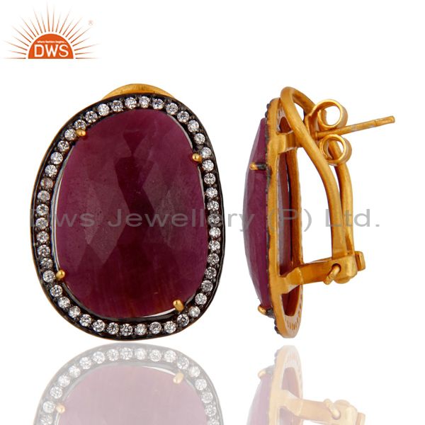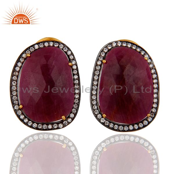 Handmade Natural Ruby Gemstone 18K Yellow Gold Plated Clip On Earrings With Cz