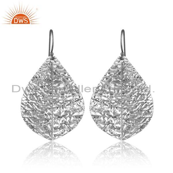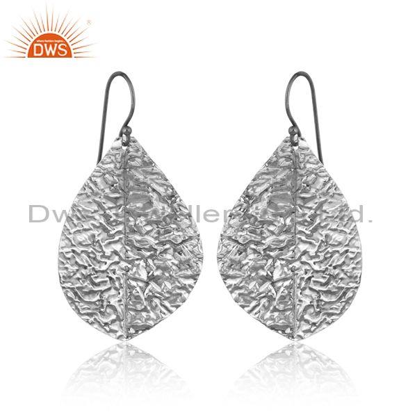 Handmade Oxidized 925 Sterling Silver Leaf Textured Earrings