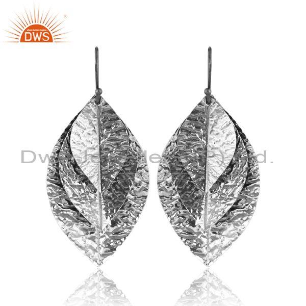 Handmade Oxidized 925 Sterling Silver Petal Style Earrings