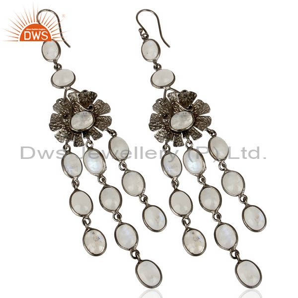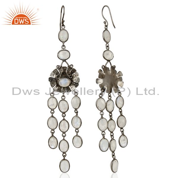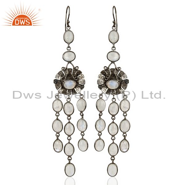 Handmade Oxidized Brass Rainbow Moonstone Chandelier Earrings
